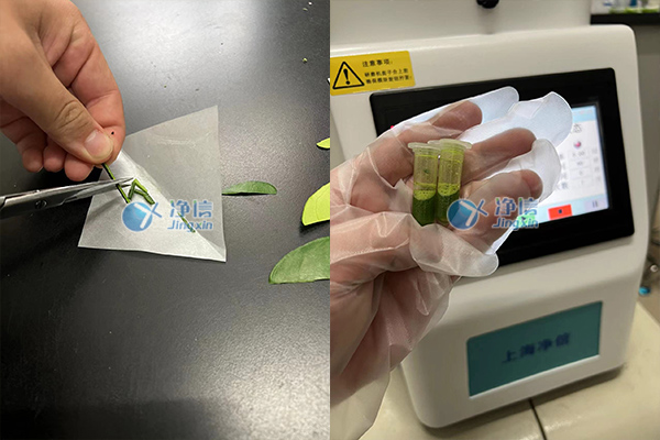 實(shí)驗(yàn)器材:上海凈信全自動樣品快速研磨儀主機(jī),柑橘葉脈1克,5M不銹鋼珠2顆,2ML研磨管