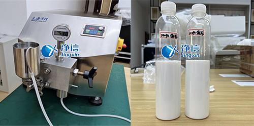 應(yīng)天津大學(xué)浙江紹興研究院客戶需求,對樣品油水混合乳液開展實驗操作。此次實驗是在上海松江工廠科研室開展進行的,選用了凈信高壓納米均質(zhì)機JXNANO-15來對樣品油水混合乳液進行實驗操作。