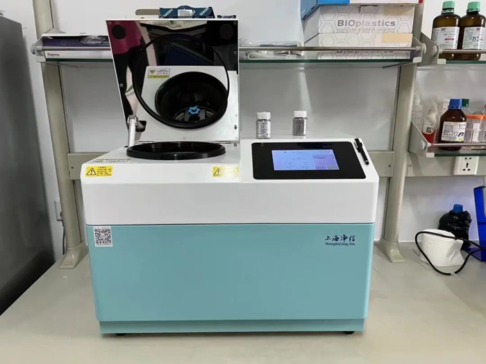 3、將研磨儀開機預冷,設置參數(shù)本次實驗參數(shù)研磨溫度-20℃,頻率60hz,研磨時間60s,研磨3次。
