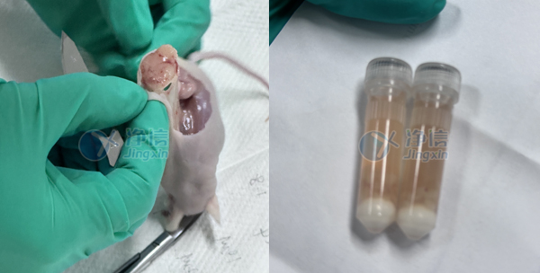 1、將接種MV4-11急性髓系白血病細(xì)胞的裸鼠斷頸處死,取下腫瘤。
