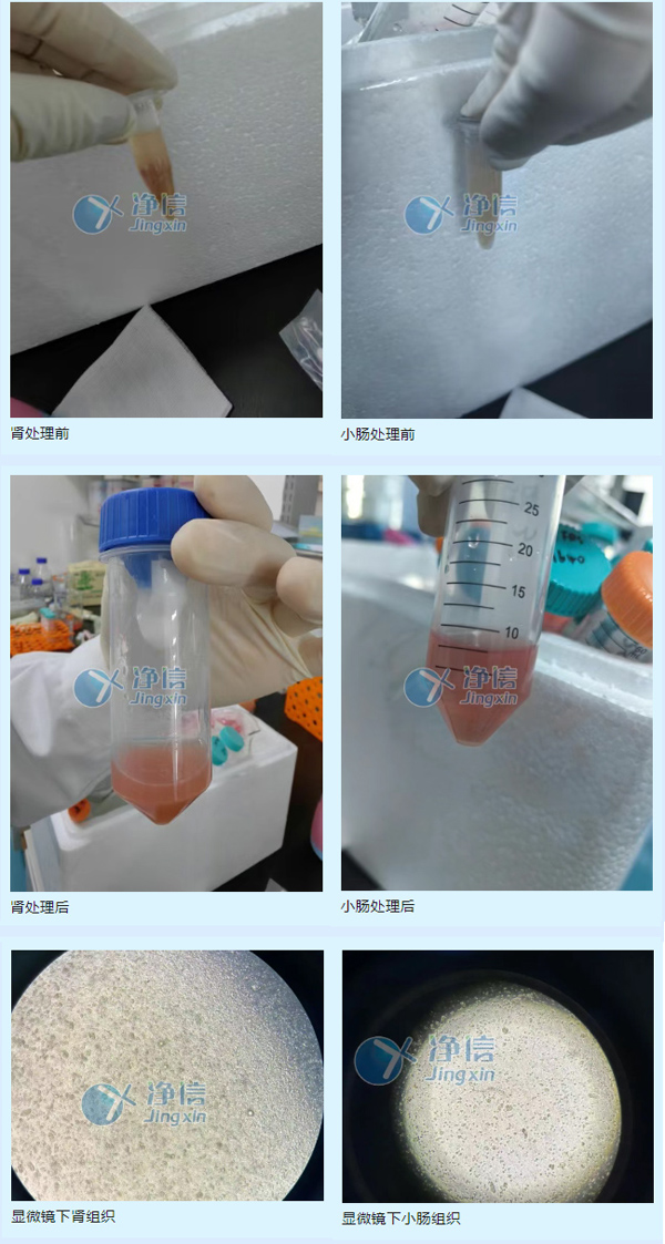 1、準(zhǔn)備50ml的消化管,小腸和腎組織剪碎成5mm左右小塊,再用PBS清洗組織碎片,再離心去掉清洗液。