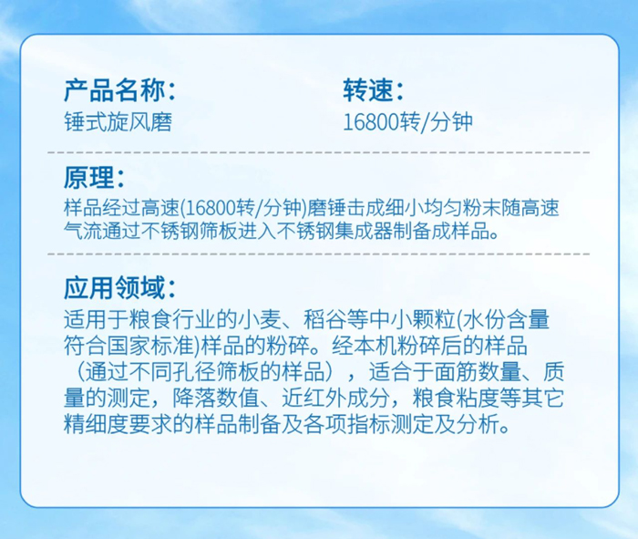只有打好樣品前處理這一 “地基”,才能在食品安全檢測(cè)中交出真實(shí)、精準(zhǔn)的答卷 —— 錘式旋風(fēng)磨用機(jī)械研磨的精密性,為每一份檢測(cè)數(shù)據(jù)筑牢可信度根基,讓 “大國(guó)糧倉(cāng)” 的質(zhì)檢防線從樣本研磨環(huán)節(jié)就充滿技術(shù)底氣,最終以可靠的檢測(cè)報(bào)告守護(hù)舌尖上的安全,為嚴(yán)苛的食品安全標(biāo)準(zhǔn)落地提供無(wú)可辯駁的技術(shù)支撐。