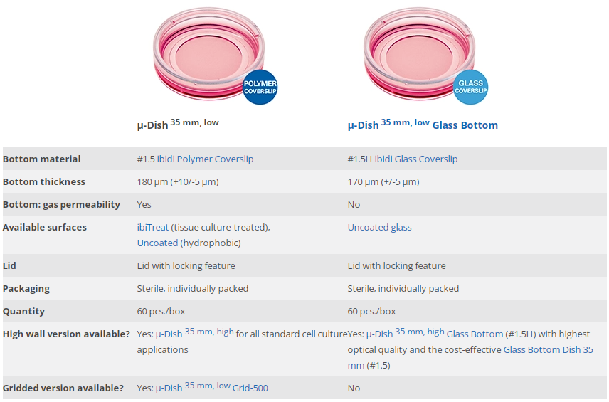 The ibidi μ-Dishes: High Walls vs. Low Walls