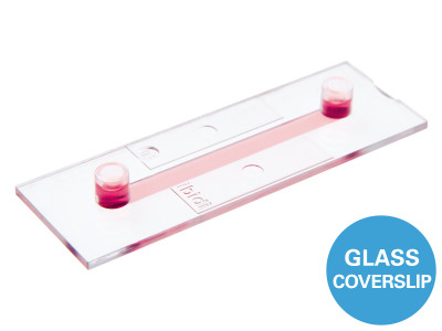 The μ-Slide I Luer Glass Bottom comes with a thin #1.5H Glass Coverslip Bottom that has the highest optical quality and is ideally suitable for high-resolution microscopy, TIRF, and super-resolution microscopy. To promote cell attachment, a surface coating might be required prior to cell seeding.