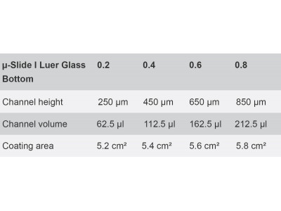 μ-Slide I Luer Glass Bottom | 0.2 | 0.4 | 0.6 | 0.8 |