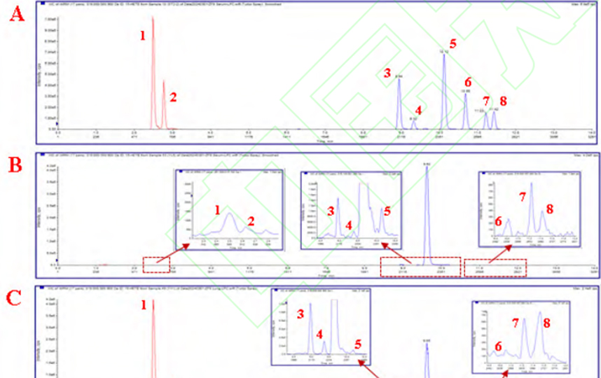 在此基礎(chǔ)上通過(guò)超高通量組織研磨儀和真空離心濃縮儀進(jìn)行優(yōu)化實(shí)驗(yàn)步驟,超高通量組織研磨儀使樣品均質(zhì)化更徹底,方便后續(xù)萃?。徽婵针x心濃縮儀補(bǔ)充了溶液蒸發(fā)過(guò)程中的爆沸,減去了添加飽和NaCl的步驟,減少后續(xù)離子干擾,使本實(shí)驗(yàn)方法更快速安全,靈敏準(zhǔn)確。