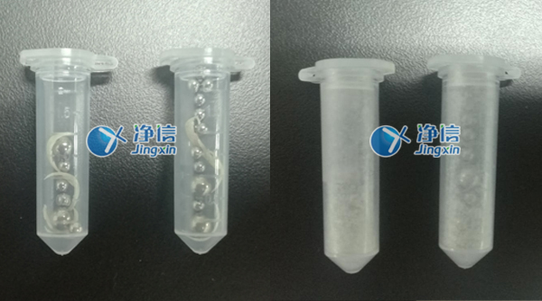 1.將指甲浸入液氮中停留若干分鐘后剪裝入研磨管內(nèi),放入幾顆鋼珠;