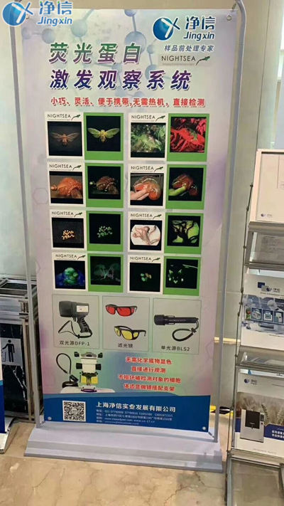 同時(shí),在此次展會(huì)上,上海凈信還推出了一款沉淀已久的新產(chǎn)品—美國(guó)NightSea熒光蛋白激發(fā)觀察系統(tǒng),這是一款無(wú)需化學(xué)底物顯色,直接進(jìn)行觀測(cè),不損壞被檢測(cè)對(duì)象細(xì)胞的設(shè)備,擁有小巧、靈活、易攜帶、使用簡(jiǎn)便等優(yōu)點(diǎn),對(duì)于有轉(zhuǎn)基因?qū)嶒?yàn)需求的科研人員,是一種特別“對(duì)胃口”的產(chǎn)品;其原理是發(fā)出的特種光源照射至生物表面時(shí),佩戴專用濾光鏡(過(guò)濾掉大部分反射光只保留所需要的光源);便可實(shí)時(shí)觀察生物的基因變化狀態(tài),目前分為單光源和雙光源兩種型號(hào)。