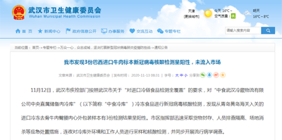 11月12日,武漢衛(wèi)健委發(fā)布消息稱,發(fā)現(xiàn)3份巴西進口牛肉標本新冠病毒核酸檢測呈陽性。