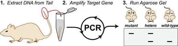 在以小鼠為模式生物進(jìn)行科學(xué)研究的實(shí)驗(yàn)室中,日常和基本的一個(gè)實(shí)驗(yàn)就是提取它們的遺傳物質(zhì)DNA(脫氧核糖核酸)進(jìn)行基因型鑒定,檢測這些小動物的基因組中是否含有特定的DNA。為了能夠從小鼠身上提取足夠的DNA,要從它們身上取下足量的細(xì)胞用于實(shí)驗(yàn)。為了盡可能減少對動物的傷害和方便試驗(yàn)人員的操作,我們只剪下一小段鼠尾作為實(shí)驗(yàn)樣品.