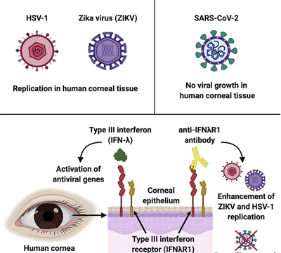 美國(guó)《細(xì)胞報(bào)告》雜志近期發(fā)表的一項(xiàng)研究表明,人類眼角膜對(duì)寨卡病毒和單純皰疹病毒1型易感,但似乎對(duì)新冠病毒有抵抗力。在此項(xiàng)研究中,專家們使用了25份角膜組織進(jìn)行實(shí)驗(yàn),其中既包括人類角膜組織,也有實(shí)驗(yàn)鼠供體的角膜組織,并將它們暴露于三種不同的病毒中,分別是:ZIKV、HSV-1和新冠病毒,結(jié)果發(fā)現(xiàn)新冠病毒沒有在角膜中繁殖。至于人角膜和結(jié)膜如何能夠抵抗新冠病毒,該研究團(tuán)隊(duì)還不能完全確定。