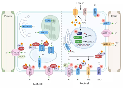 近日中國(guó)農(nóng)業(yè)大學(xué)武維華院士團(tuán)隊(duì)題為"Potassium and phosphorus transport and signaling in plants"的綜述論文。該論文以擬南芥和水稻為例,系統(tǒng)歸納了植物、作物吸收、運(yùn)輸鉀和磷的分子調(diào)控機(jī)制,以及植物/作物感受和應(yīng)答低鉀、低磷逆境脅迫的信號(hào)轉(zhuǎn)導(dǎo)機(jī)制。此外,論文還討論了氮、磷、鉀養(yǎng)分之間的互作關(guān)系,及其協(xié)同吸收、運(yùn)輸?shù)姆肿訖C(jī)理。