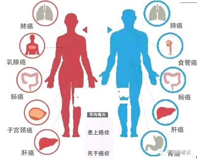 在我國,癌細(xì)胞頻繁“光顧”的人體組織,位居男性發(fā)病率前十位的分別是,肺、胃、肝、食管、大腸癌、膀胱、胰腺、腦、淋巴、腎;女性為肺、乳腺、大腸、胃、肝、食管、卵巢、宮頸、胰腺、腦?!翱梢哉f,這十種腫瘤占據(jù)了所有腫瘤類型的80%以上。