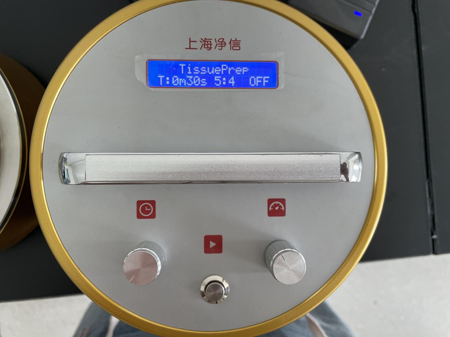接下來,我們將裝有豬肺組織的研磨罐固定在快速組織研磨儀上,根據(jù)實(shí)驗(yàn)需求設(shè)置好研磨時(shí)間、轉(zhuǎn)速等參數(shù)。按下開始按鈕后,研磨儀便開始工作。此時(shí),我們可以清楚地觀察到豬肺組織在研磨罐中逐漸被破碎成細(xì)膩的糊狀物,此次的研磨效果良好。