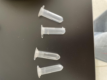 實(shí)驗(yàn)開始客戶使用自配的離心管進(jìn)行研磨,兩個樣品,另外添加兩個凈信生產(chǎn)的加厚研磨管進(jìn)行四角配平,時(shí)間30s,功率調(diào)到4檔??蛻舻碾x心管很薄,立馬被擊碎,凈信加厚研磨管沒有破裂但也出現(xiàn)了較嚴(yán)重磨損。
