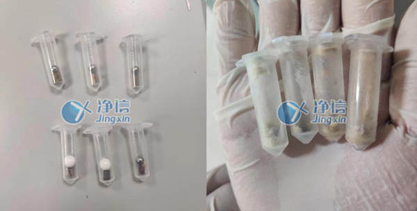 上圖為1分鐘的研磨效果,已經(jīng)完全研磨完成,達到老師預(yù)期效果。研磨管一次可以做24個樣品,經(jīng)過全自動冷凍組織研磨儀的研磨處理后,蘋果樹枝條能夠快速被研磨成細(xì)小的顆粒,從而方便后續(xù)的分析。同時,該研磨儀的運行過程中不會引入外界污染,從而保證了樣品的純度。經(jīng)過多次了解和對比所以老師們選用凈信研磨儀代替人工處理。效率高,效果好。成功的解決了老師的研磨問題。