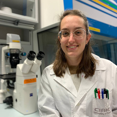 畢業(yè)后,她通過Erasmus+計劃在國外度過了一段時間,運用她在類器官方面的技術(shù)技能,研究常染色體隱性原發(fā)性小頭畸形患者的異常大腦發(fā)育。2023年夏天,她在特倫托大學(xué)獲得了生物分子科學(xué)博士學(xué)位(以優(yōu)異成績畢業(yè));該項目的主要目標(biāo)是直接從原發(fā)性腫瘤樣本中創(chuàng)建用于兒童腦癌的患者和異種移植衍生的類器官 (PDO和PDXO)。通過這種新模型,她通過評估PDO對常規(guī)治療方案的反應(yīng),驗證了PDO在更多轉(zhuǎn)化應(yīng)用方面的潛力。Chiara對類器官技術(shù)在癌癥領(lǐng)域的應(yīng)用非常著迷,并非常致力于兒童癌癥研究。