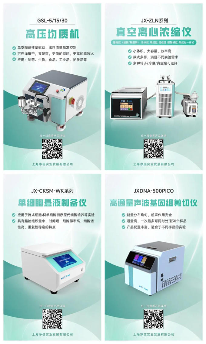 上海凈信科研者系列產(chǎn)品的上市推廣,包括真空離心濃縮儀、高壓均質機、單細胞懸液制備儀、高通量聲波基因組剪切儀等,標志著公司從單一產(chǎn)品向多元化發(fā)展的轉變,拓展了市場影響力。更是了體現(xiàn)了上海凈信在實驗室設備領域的專業(yè)性和技術實力,能夠滿足不同科研和工業(yè)應用的需求。