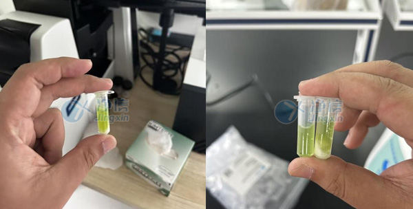 實(shí)驗(yàn)?zāi)康模?/strong>本次實(shí)驗(yàn)對(duì)象為微藻,后續(xù)會(huì)做到核酸蛋白提取。作為微生物,且此類微藻細(xì)胞壁非常厚,研磨起來也是一個(gè)難點(diǎn),要求研磨徹底,以便提高蛋白及核酸的濃度,涉及到蛋白、RNA提取還需要低溫研磨,之前用超聲破碎長時(shí)間也無法破碎,因?yàn)闃悠繁旧硎且后w,所以溫度也不能太低,否則凍住液體無法研磨,經(jīng)過比較推薦,最終客戶選擇上海凈信全自動(dòng)樣品快速組織研磨儀處理樣品。