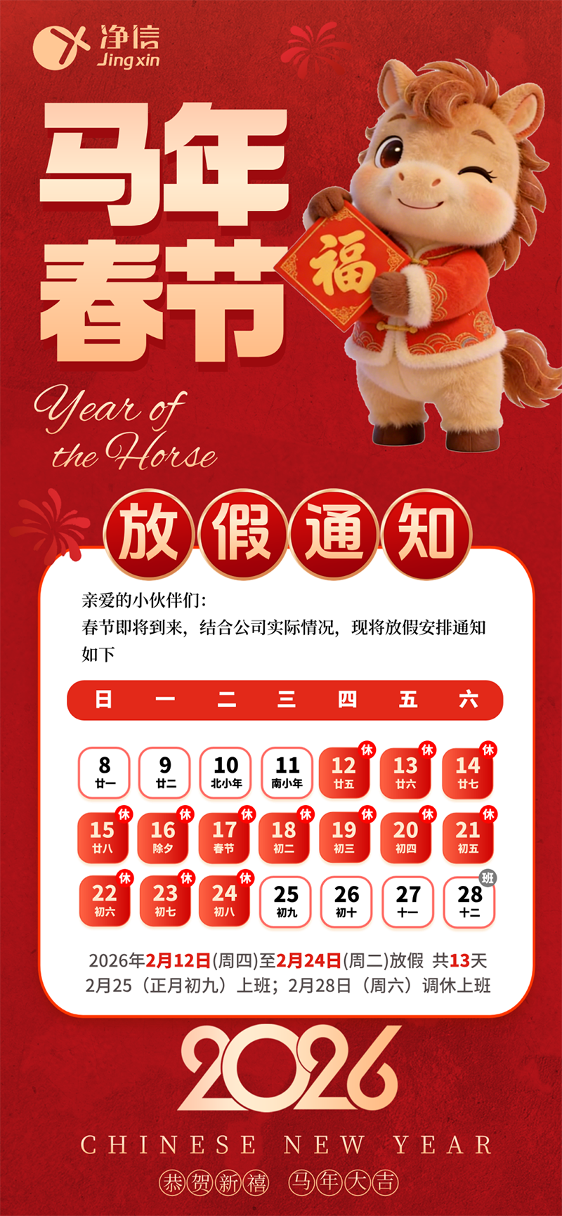 丙午新歲 馬力全開(kāi) | 上海凈信2026春節(jié)放假通知