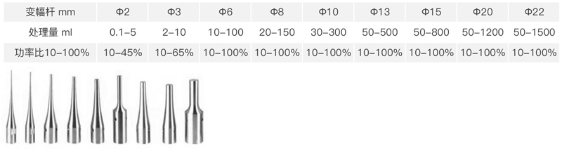 3.超聲探頭采用美標TC4材質(zhì)的高純鈦合金,探頭形狀:錐形、鞭節(jié)形,發(fā)波形式:垂直超聲。
